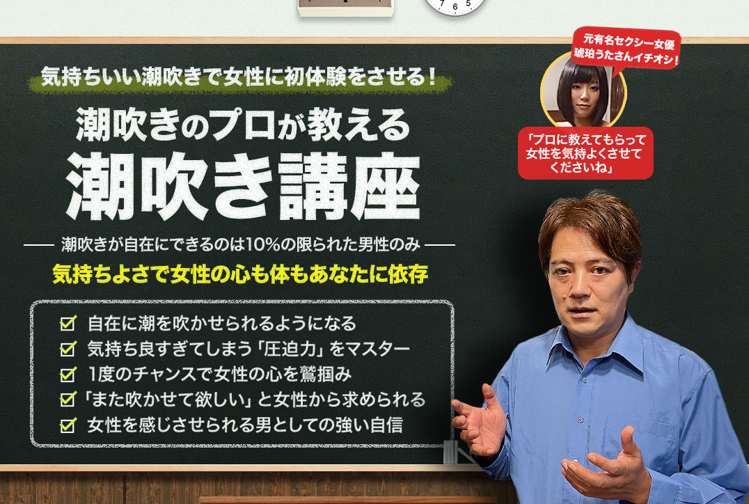 男優歴25年以上の桜木駿が、潮吹きの技術と女性の心と体を抱くことができる男になるための技術を伝授しています。