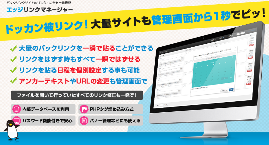 「エッジリンクマネージャー」は、サーバー設置型の被リンク(バックリンク)一括管理ツールです。