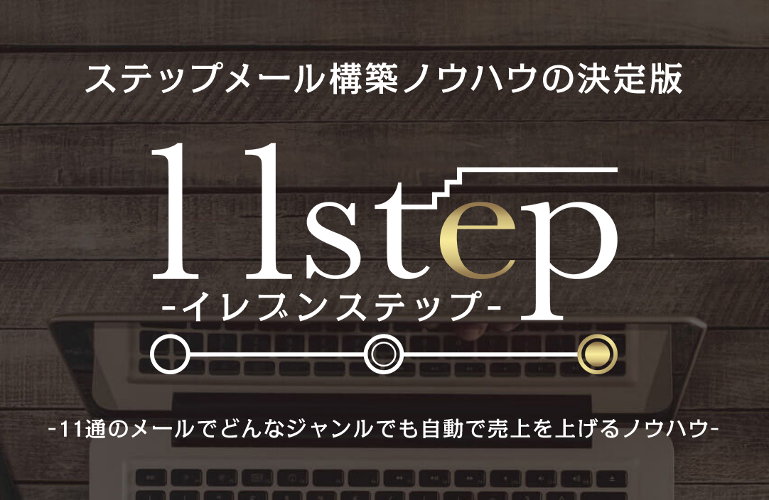 「11step」は、たった11通のメールをセットするだけで、どんなジャンルでも自動で売上を積み上げるステップメール構築ノウハウです。