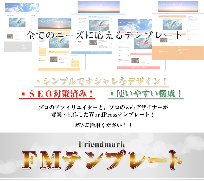 「FMテンプレート」は、プロのアフィリエイターと、プロのwebデザイナーが考案・制作したWordPressテンプレートです。