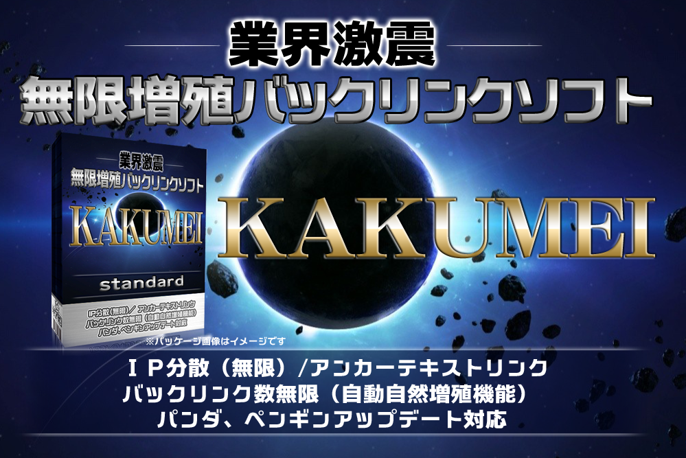 当サイト経由で「業界に革命をもたらした被リンクソフト「KAKUMEI」」をご購入頂くと、