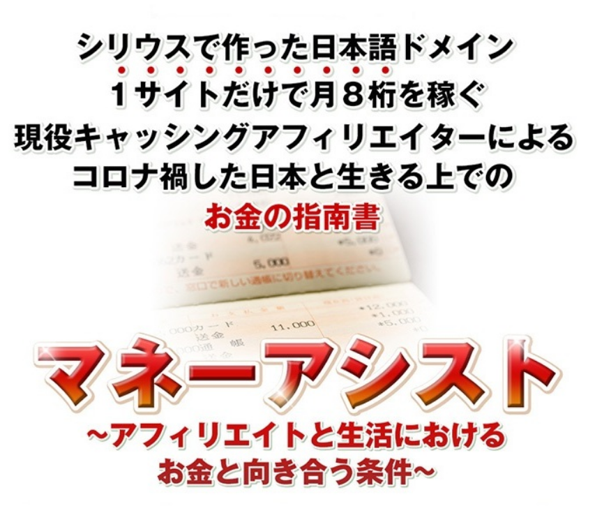 「マネーアシスト」は、シリウスで作った1サイトだけで月8桁稼ぐキャッシングアフィリエイターによるアフィリエイト教材です。