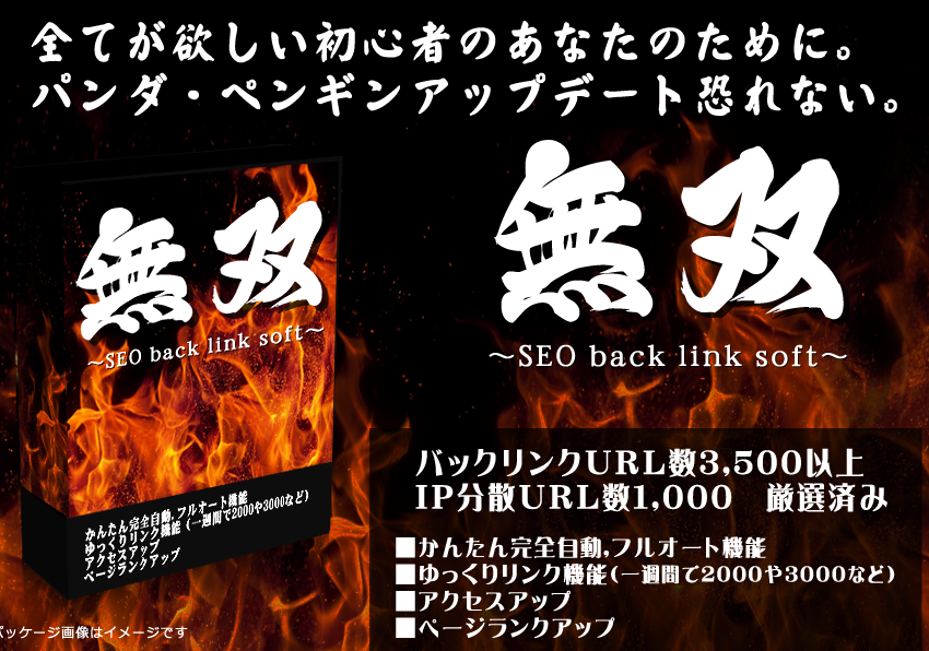 「無双」は、ペンギン、パンダなどのグーグルアップデートに完全対応したバックリンクソフトです。