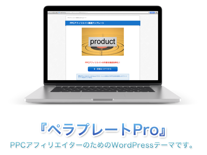 「ペラプレートPro」は、PPCアフィリエイト用のランディングページ(ペラサイト)を効率よく作成することができるWordPressテーマです。