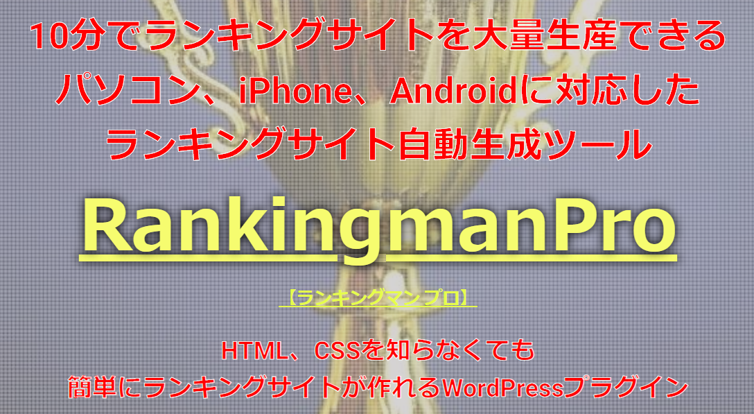 「RankingmanPro」(ランキングマン プロ)は、ランキングサイトを自動で生成できるアフィリエイトツールです。