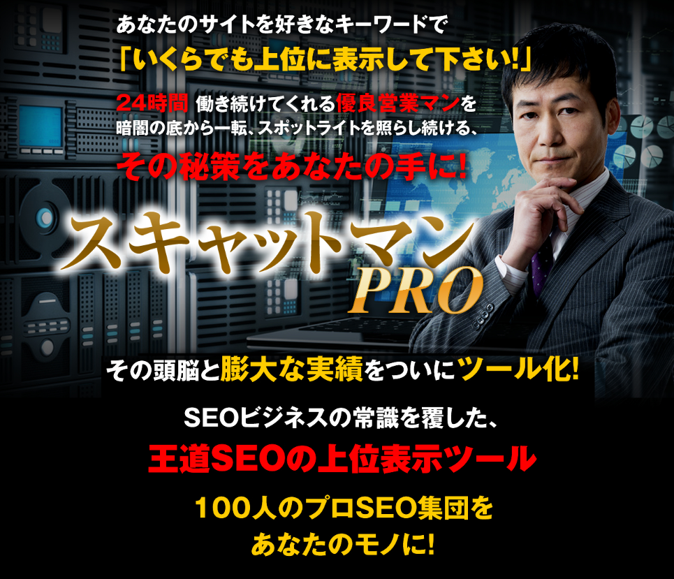 「スキャットマンPRO」は、SEOビジネスの常識を覆す、王道SEOの上位表示ツールです。