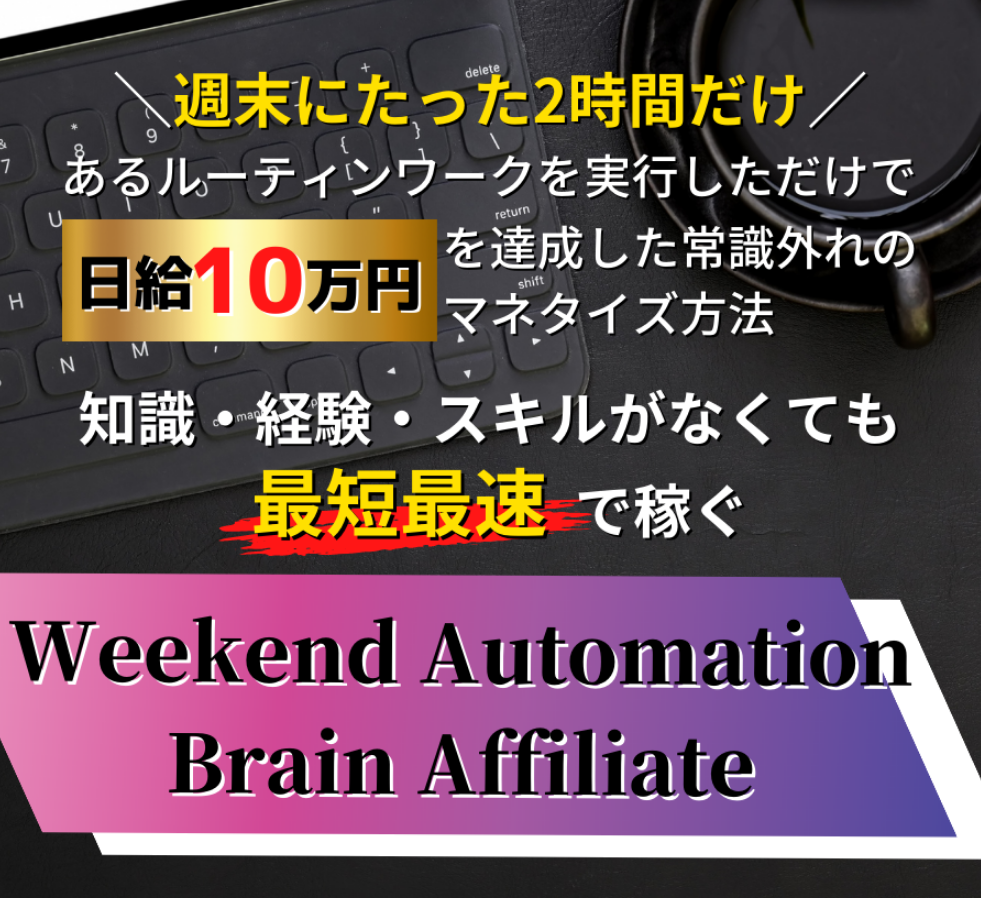 0→1突破に特化したチート手法に興味がある方はぜひ、「Weekend Automation Brain Affiliate」をお試しください!