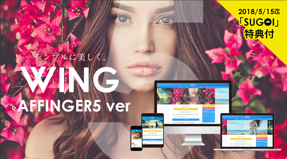 「WING(AFFINGER5)」はSEOに強く収益が発生しやすいSTINGER、アフィリエイト機能を備えたAFFINGER4を大幅にアップグレードしたWordPress最新テーマです。