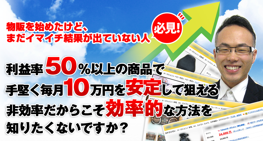 フリーマーケット(フリマ)での仕入れ、そしてオークション代行というネットを使わないリアル仕入れで、ネット仕入れではありえない利益率を狙います。