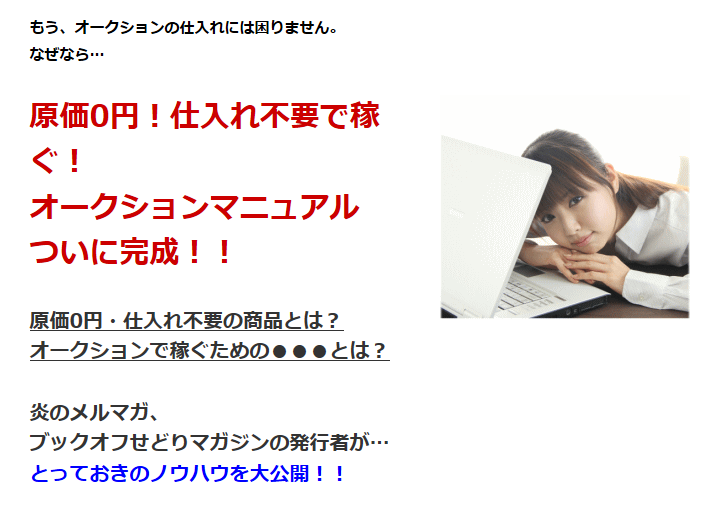 ある方法で入手できる…原価0円の商品を、ツールを使って効率よく稼ぐ方法を解説しています。
