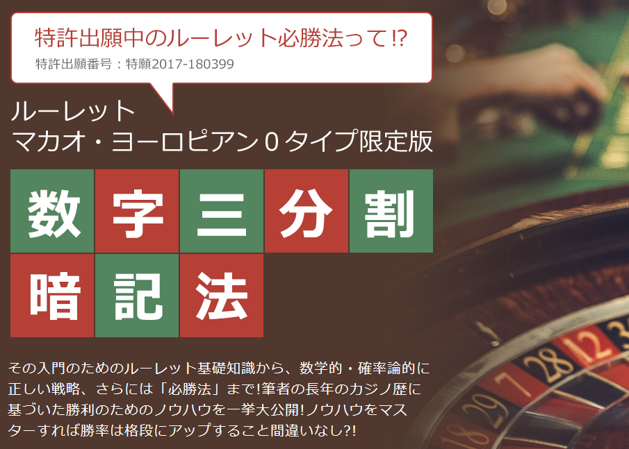 当サイト経由で「ルーレット必勝法 マカオ・ヨーロピアン0タイプ限定版 数字三分割暗記法」をご購入頂くと、
