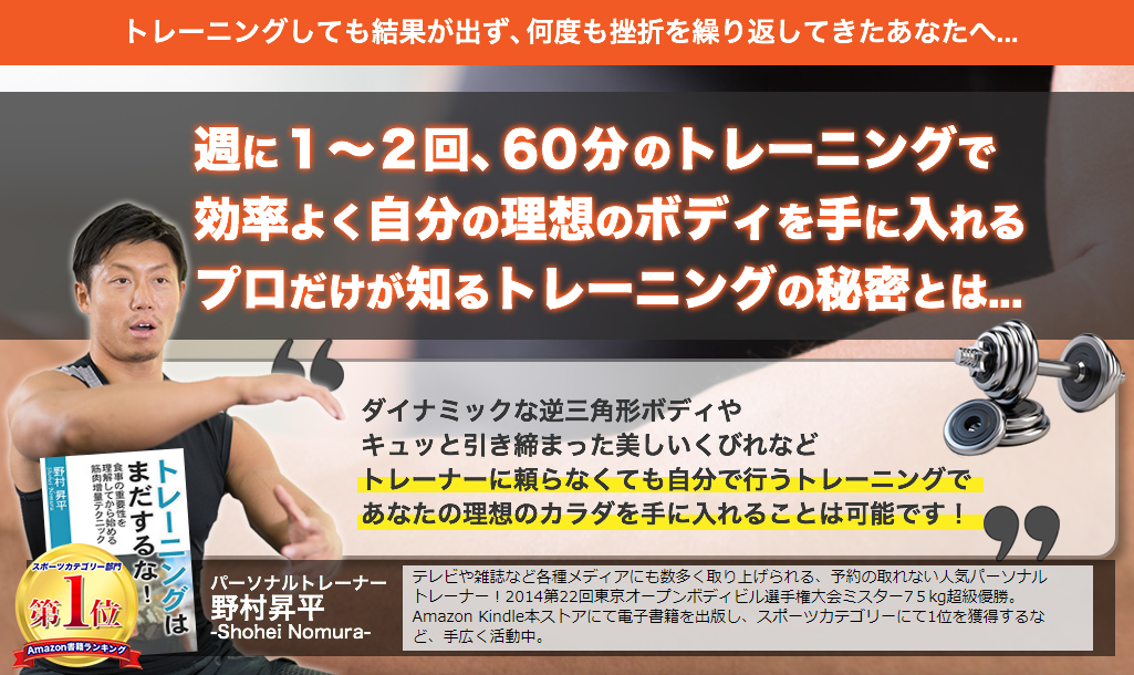 当サイト経由で「短期間で効率よく理想のボディを手に入れる トレーナーいらずのセルフトレーニング術」をご購入頂くと、