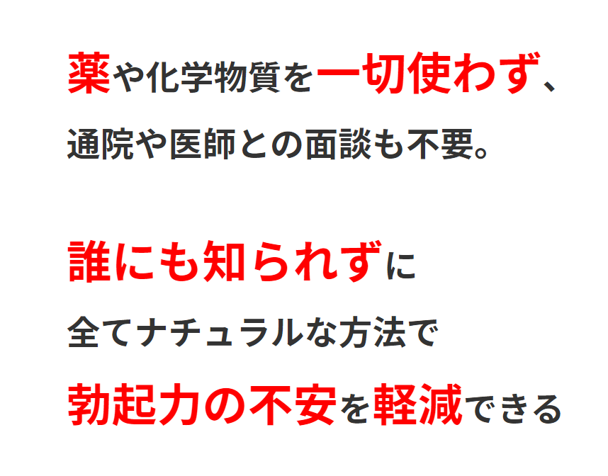 「ED無縁のギンギン男性器をゲットする方法」は、全てナチュラルな方法で勃起力の不安を軽減できる方法です。
