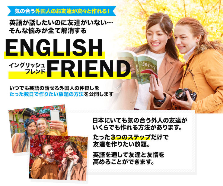 「ENGLISH FRIEND」(イングリッシュ フレンド)は、日本に在住したままで外国人の友達を次々と作る方法です。