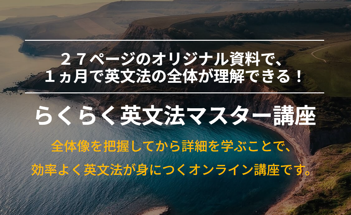 今までの学習法で英文法が理解できなかった方は、英文法を全体像から学べる「らくらく英文法マスター講座」でぜひ学んでみて下さい!