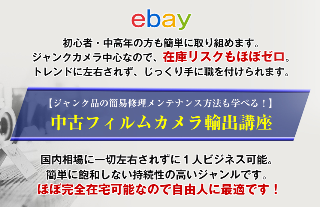 「ebay中古フィルムカメラ輸出講座」は、ジャンクカメラを中心とした転売ビジネスマニュアルです。