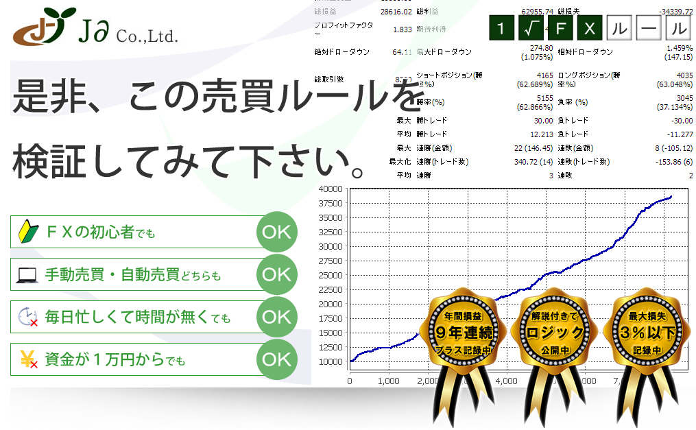 また、1√FXルール解説書を取得する際は、同時に1√FXルールによる自動売買が可能なプログラムファイルも付属していますので、これにより、初心者と熟練者の差は無いと言うことができるでしょう。