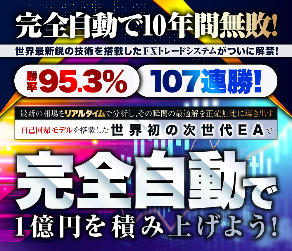 「Complete One EA(コンプリートワンEA)」は、最新技術、自己回帰モデルを搭載したFX完全自動売買システム(EA)です。