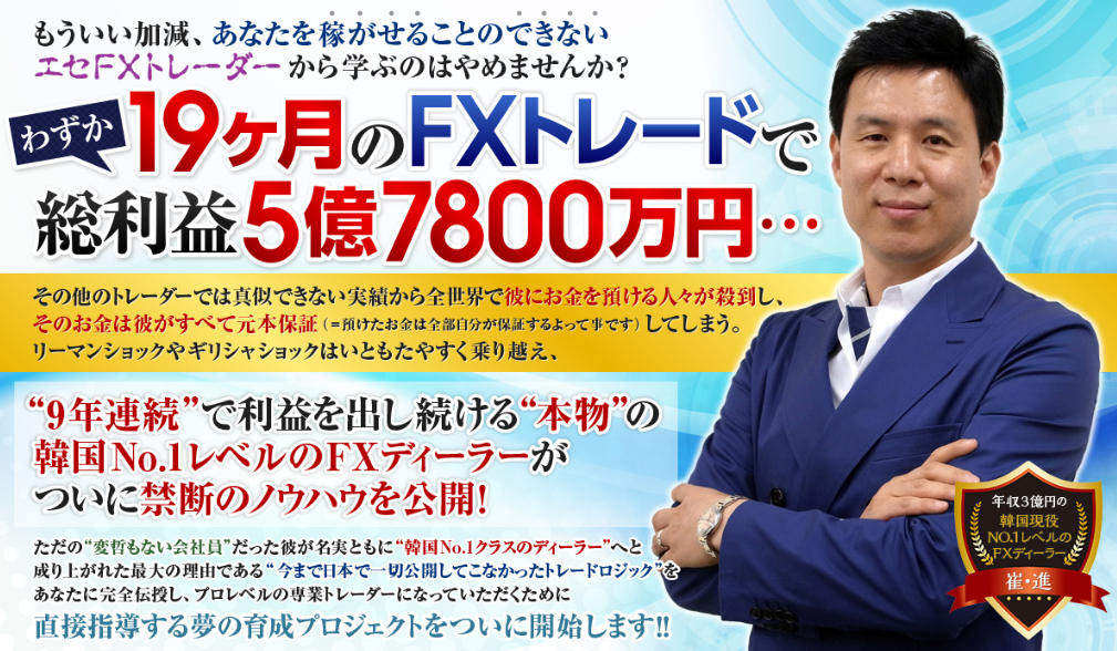「Gangnam FX 〜カンナム・エフエックス〜」は、プロレベルのFX専業トレーダーとして独り立ちするための技術を身につけ、経済的自由を掴み取っていただくことを目指す、正真正銘本気のプロジェクトです。