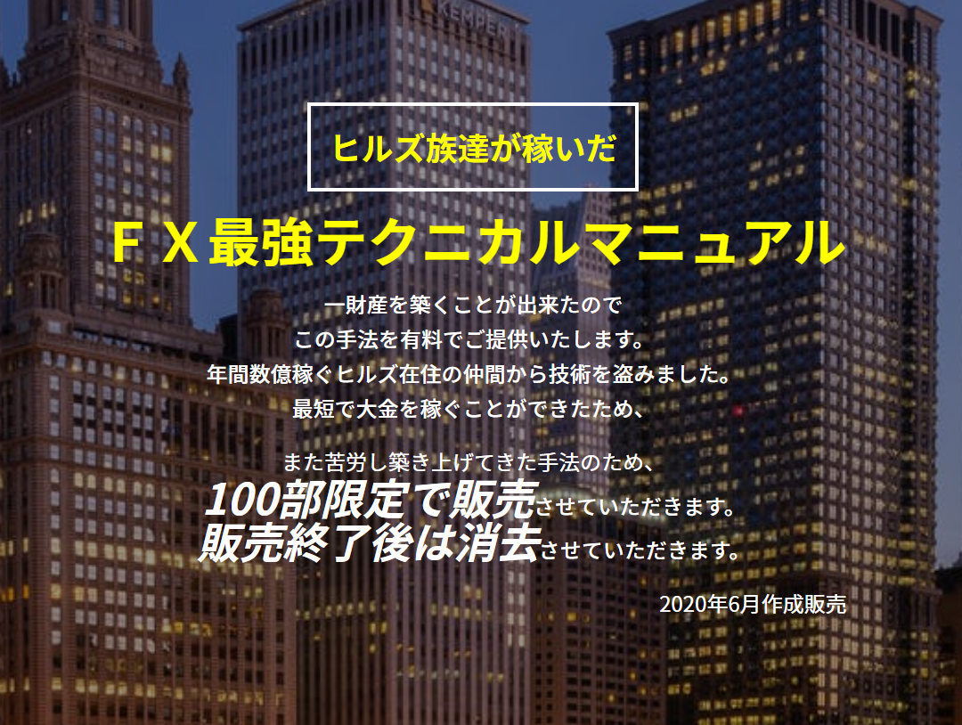 当サイト経由で「ヒルズ族達が稼いだFX最強テクニカルマニュアル」をご購入頂くと、