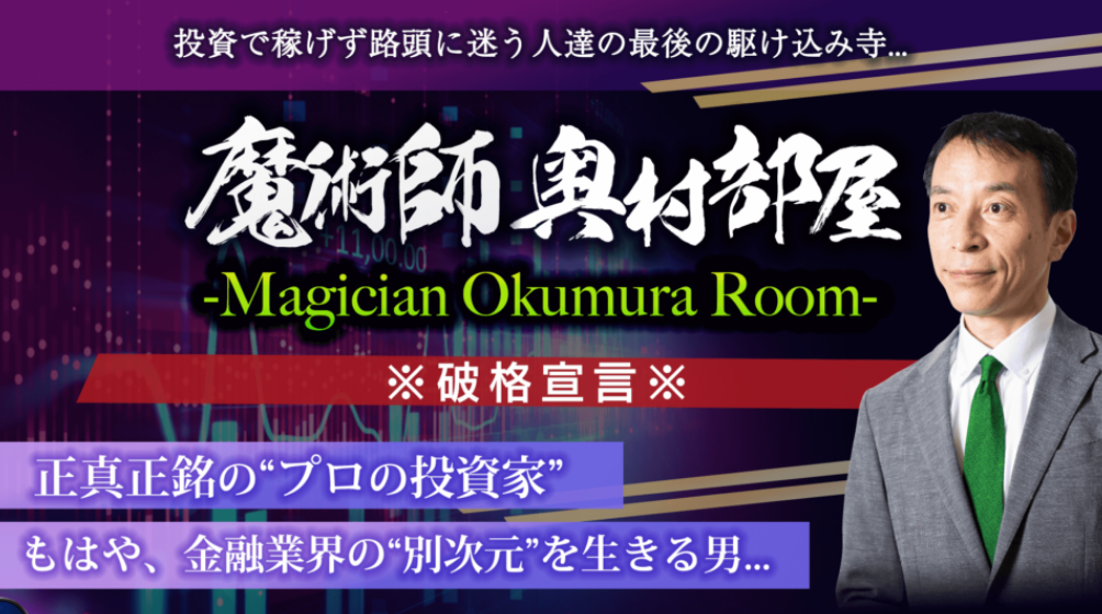 「魔術師 奥村部屋 -Magician Okumura Room-」は、マーケットの魔術師“奥村 尚”氏の月額/会員制極秘プロジェクトです。