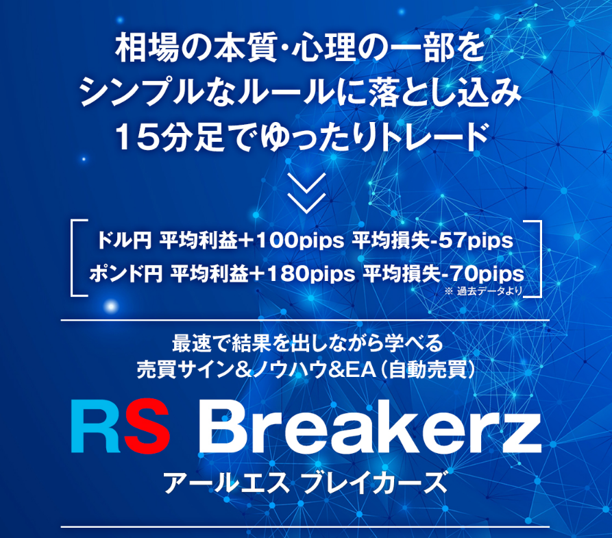 「RS Breakerz」は、最速で結果を出しながら学べる売買サイン&ノウハウ&EA(自動売買)です。