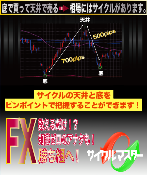 「FX サイクルマスター」は、サイクル理論を取り入れたFXトレード教材です。