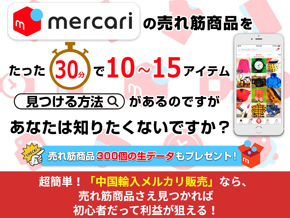 “中国輸入メルカリ販売”売れ筋商品【最速リサーチ&特定方法】ではこのような事が学べます。