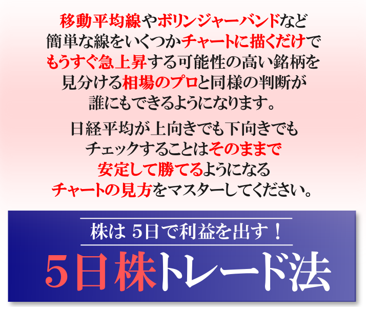 当サイト経由で「株は5日で利益を出す!「5日株トレード法」」をご購入頂くと、