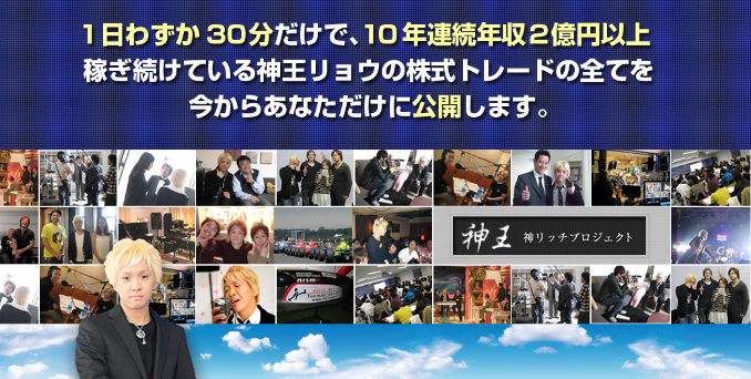 「神リッチプロジェクト」 は、10年間年収2億円以上、資産30億円超えの神王リョウがどのようにしてミリオネアに成り上がったのかという秘密を全て公開してくれるプロジェクトです。