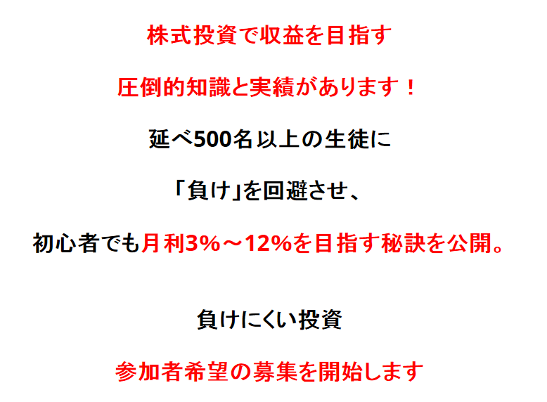 株式投資の世界で6年間稼ぎ続けてきた実力と知識を持つトップレベルの講師が、親身に分かりやすく負けにくい株式投資を伝授しています。