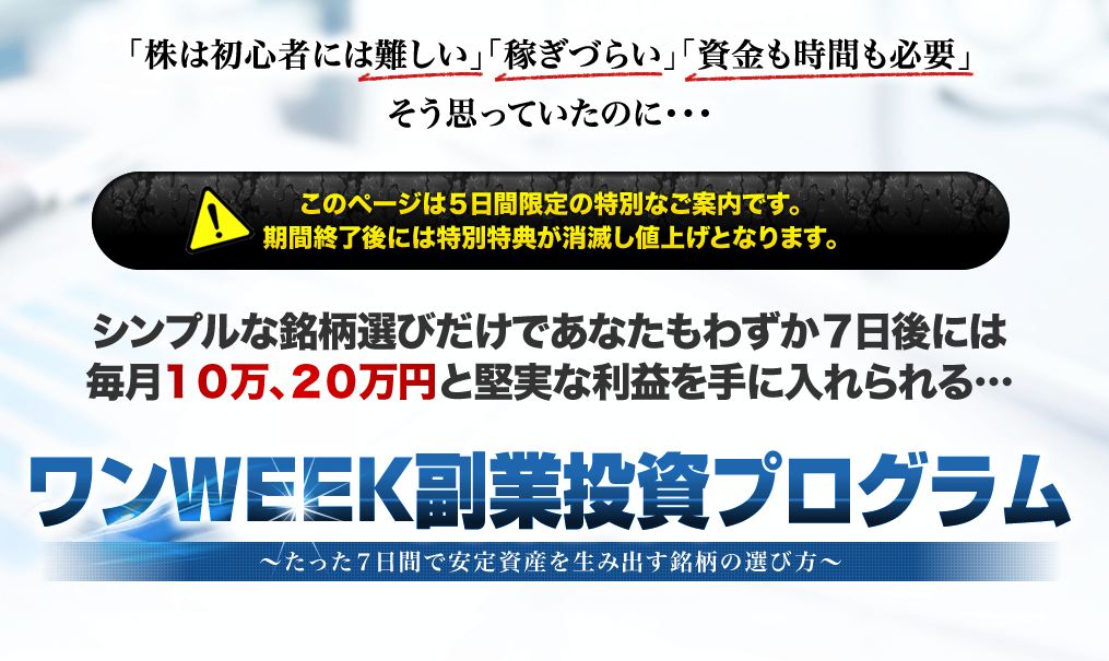当サイト経由で「ワンWEEK副業投資プログラム」をご購入頂くと、