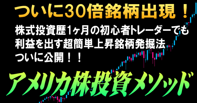 「アメリカ株投資メソッド」は、株式投資歴1か月の初心者トレーダーでも利益を出せる超簡単上昇銘柄発掘法です。
