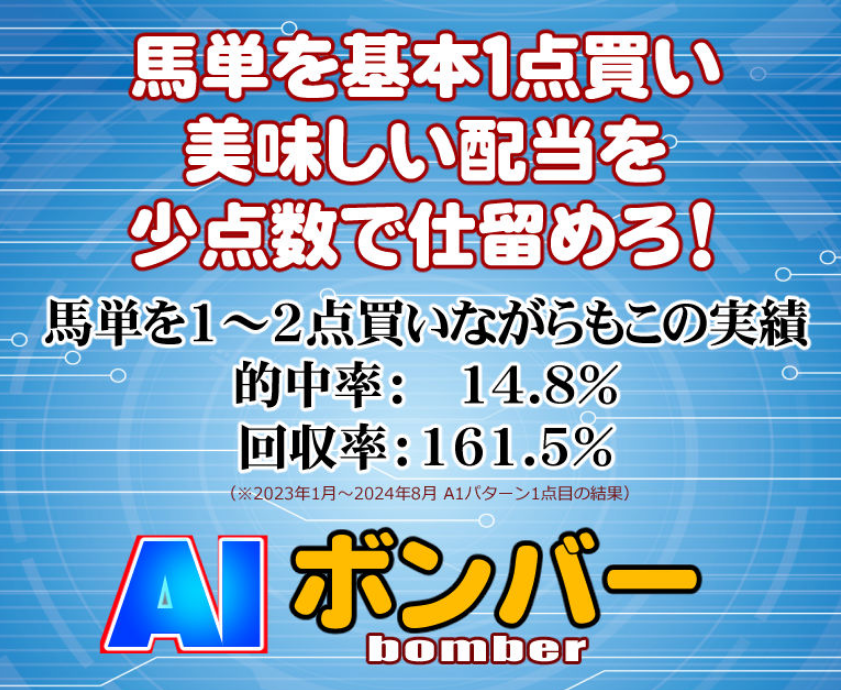 こちらは『AIボンバー』と同じ対象レースで、単勝も3連単も1点だけ狙ってしまおうというノウハウになります。
