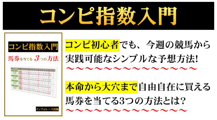当サイト経由で「コンピ指数入門〜馬券を当てる3つの方法〜」をご購入頂くと、