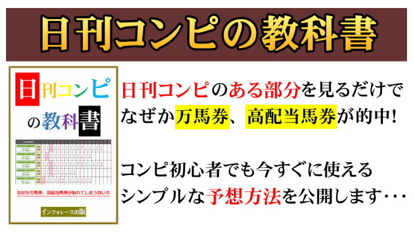 当サイト経由で「日刊コンピの教科書〜なぜか万馬券、高配当が取れてしまう買い方〜」をご購入頂くと、