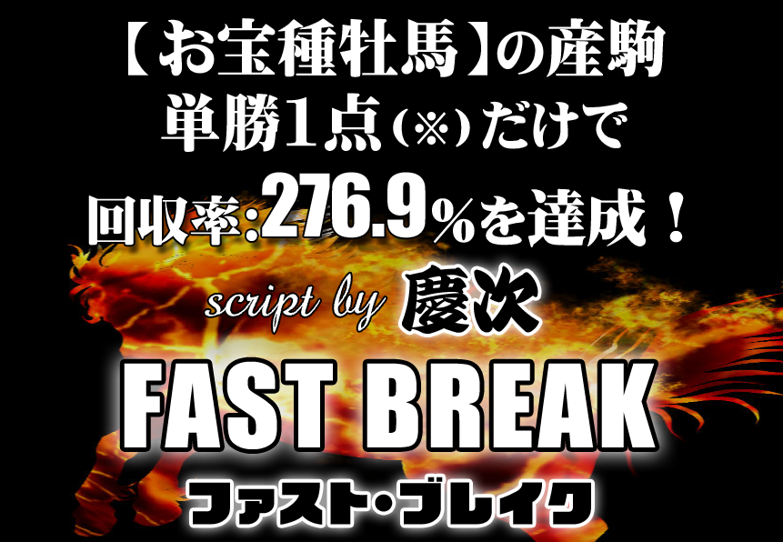 このFAST BREAKは、そんな「お宝種牡馬」及び収益性をアップさせる条件や買い目などを、全て紹介しています。