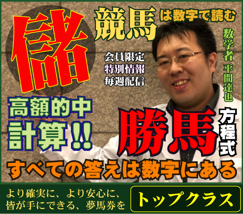 当サイト経由で「JRA全レース攻略!数学者が計算する勝てる馬券情報!誰もが夢見る全勝無敗と100万円を超える超高配当の的中が実現できる!」をご購入頂くと、