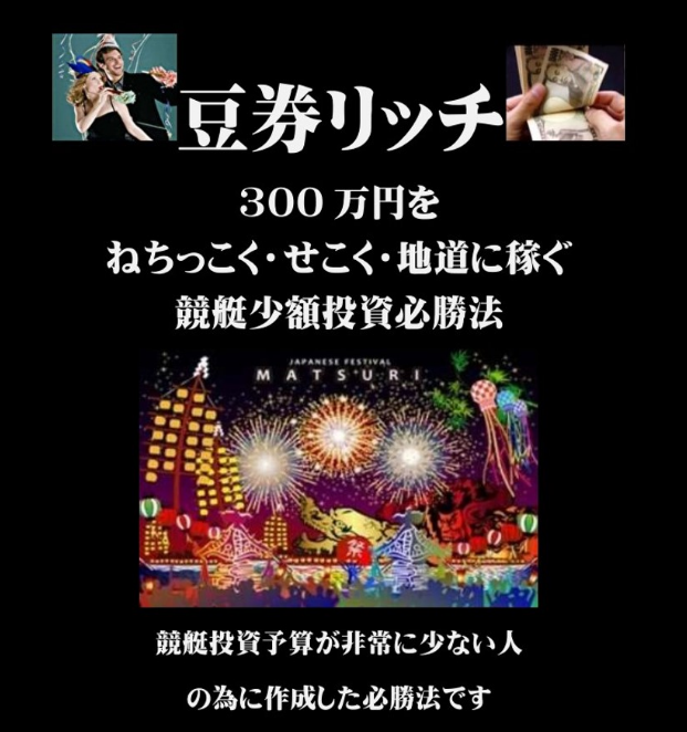 当サイト経由で「豆券リッチ300万 競艇少額投資必勝法」をご購入頂くと、