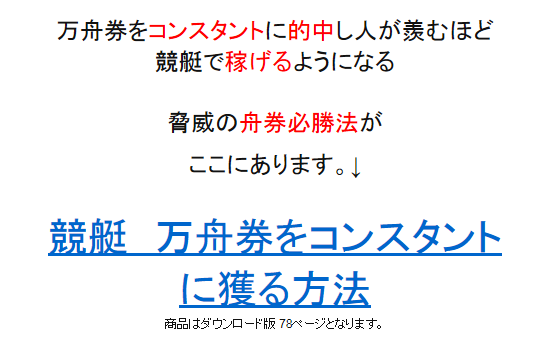 当サイト経由で「競艇 万舟券をコンスタントに獲る方法」をご購入頂くと、