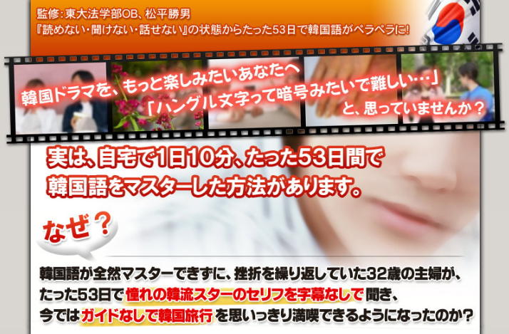 「超らく韓国語マスター術」は、レッスン料や教材料などの高額な出費を抑え、心から韓国語を楽しみながら覚えられる、というコンセプトのもとに作成された韓国語習得教材です。