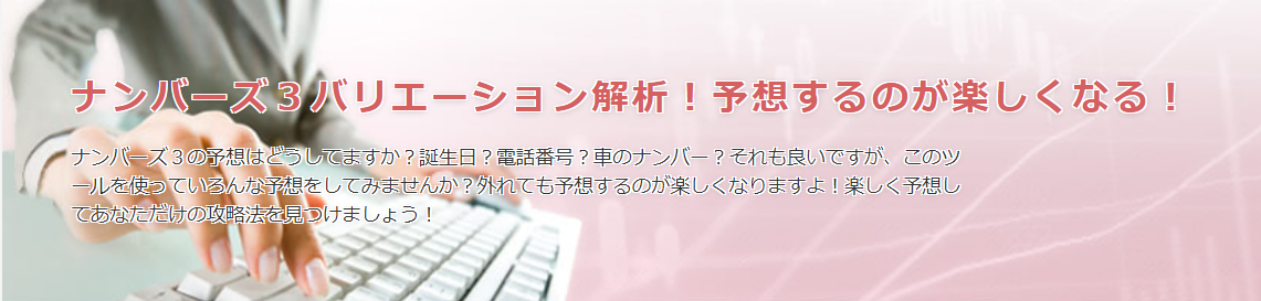 「ナンバーズ3バリエーション解析ツール」は、当たりそうな番号を予想するツールではありません。