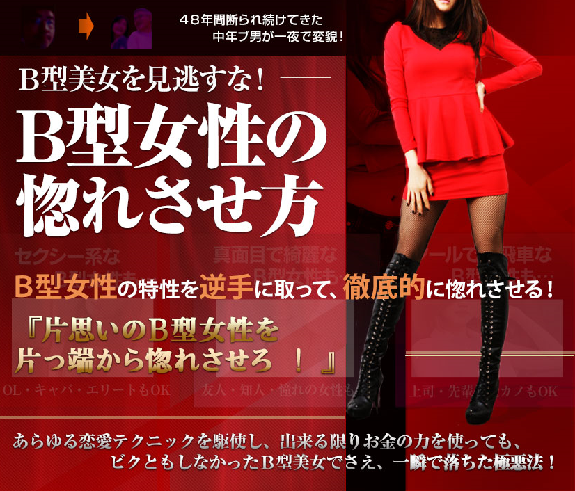 恋愛に悩んでいる方、ぜひB型女性の惚れさせ方という方法を通して、そして自信と成果を手に入れて下さい。