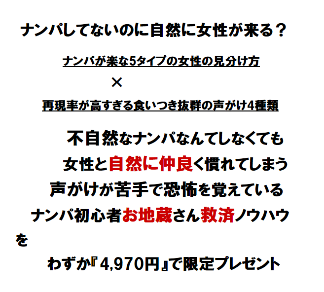 「ナンパ童貞救出計画」は、声が掛けれずナンパできない方を対象とした素人専用ナンパ術です。