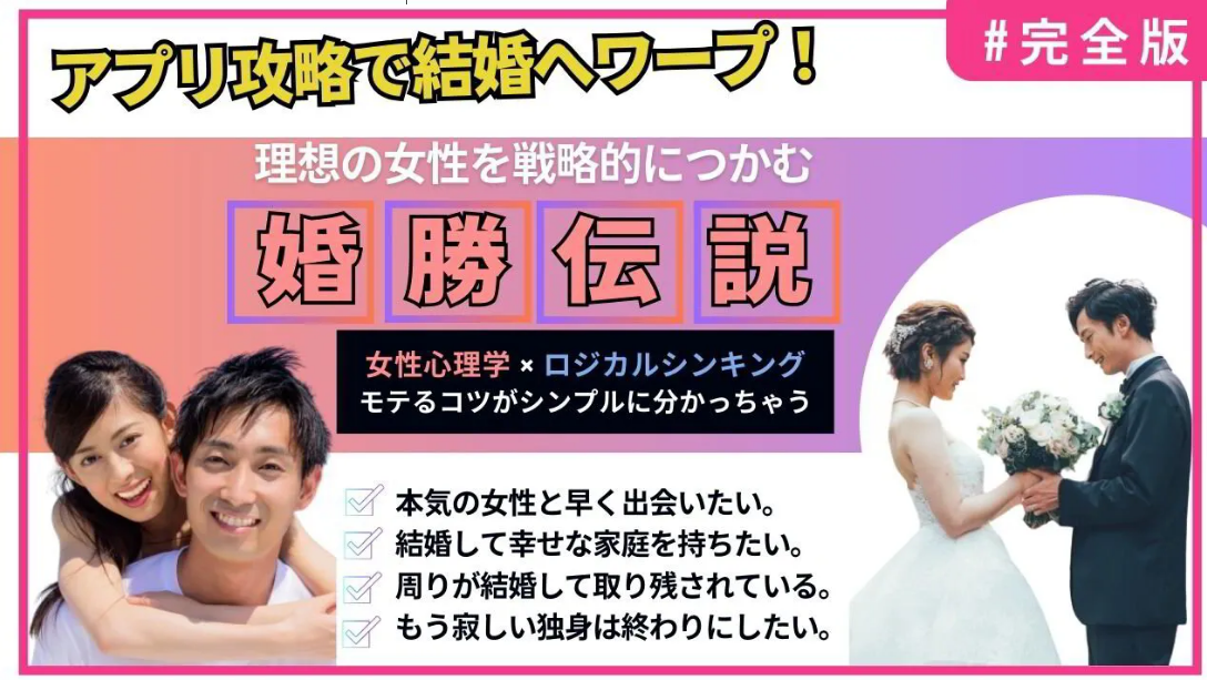 当サイト経由で「婚勝伝説〜婚活アプリ攻略術で成婚へ!〜」をご購入頂くと、