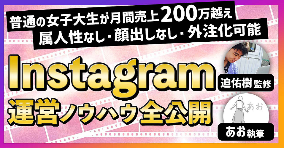 当サイト経由で「インスタのアカウント設計から収益化までの全ノウハウ」をご購入頂くと、