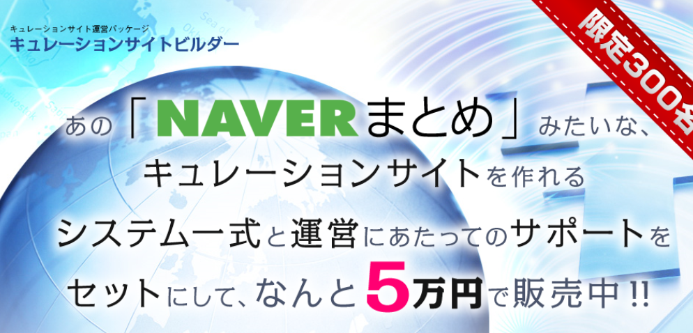 「キュレーションサイトビルダー」は、NEVERまとめのようなキューションサイトを作成できるシステム一式と運営のためのサポートがセットとなった商品です。