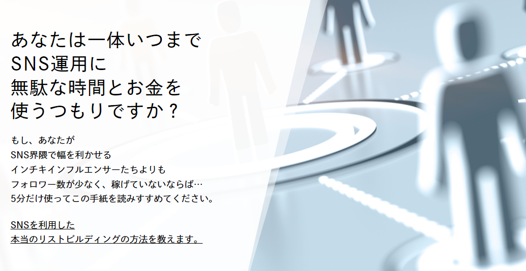 この教材に書かれたことを実践することで、効果的なSNSリストビルディングを身に付けることが出来ます。