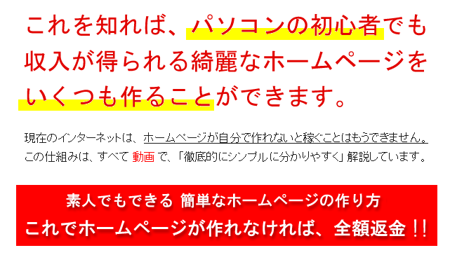 「自分で更新できる最短ホームページテンプレート」は、パソコンの初心者でも収入が得られる綺麗なホームページを簡単にいくつも作ることができるテンプレートです。