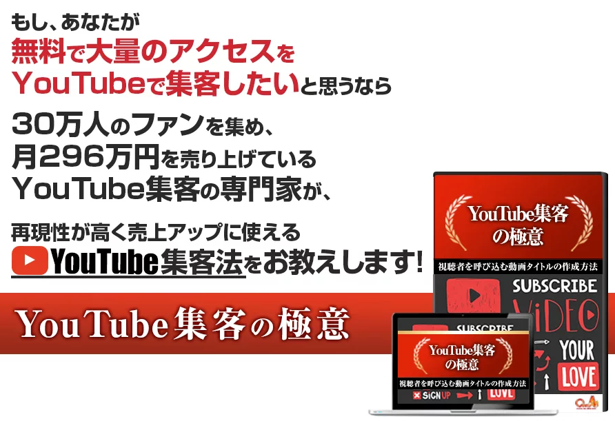 当サイト経由で「YouTube集客の極意」をご購入頂くと、